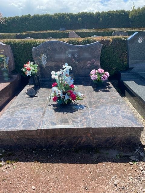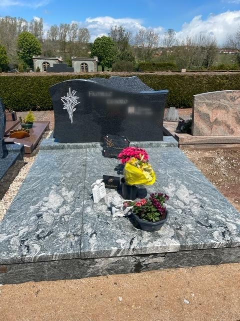 - – la pierre tombale : vous pouvez choisir parmi plusieurs matériaux, de la pierre (l’entretien est fastidieux), le marbre (le choix de couleur est limité) et le plus courant le granit qui permet d’avoir un large choix de couleurs;